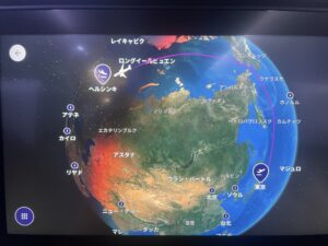 飛行機はロシア上空が飛べないため、北極点を回っていく飛行経路で16時間のフライトでした。