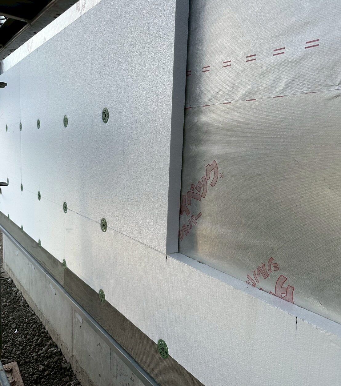そして、その外断熱に今回は「エコサーム」と呼ばれる断熱システムを、某現場にて施工しています!