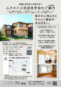 さて 話はかわりますが 12/13.14の2日間 完成見学会があります