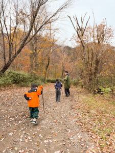 そのあとは大山滝へ向けて、誰もいない森の中、山道をトレッキング。