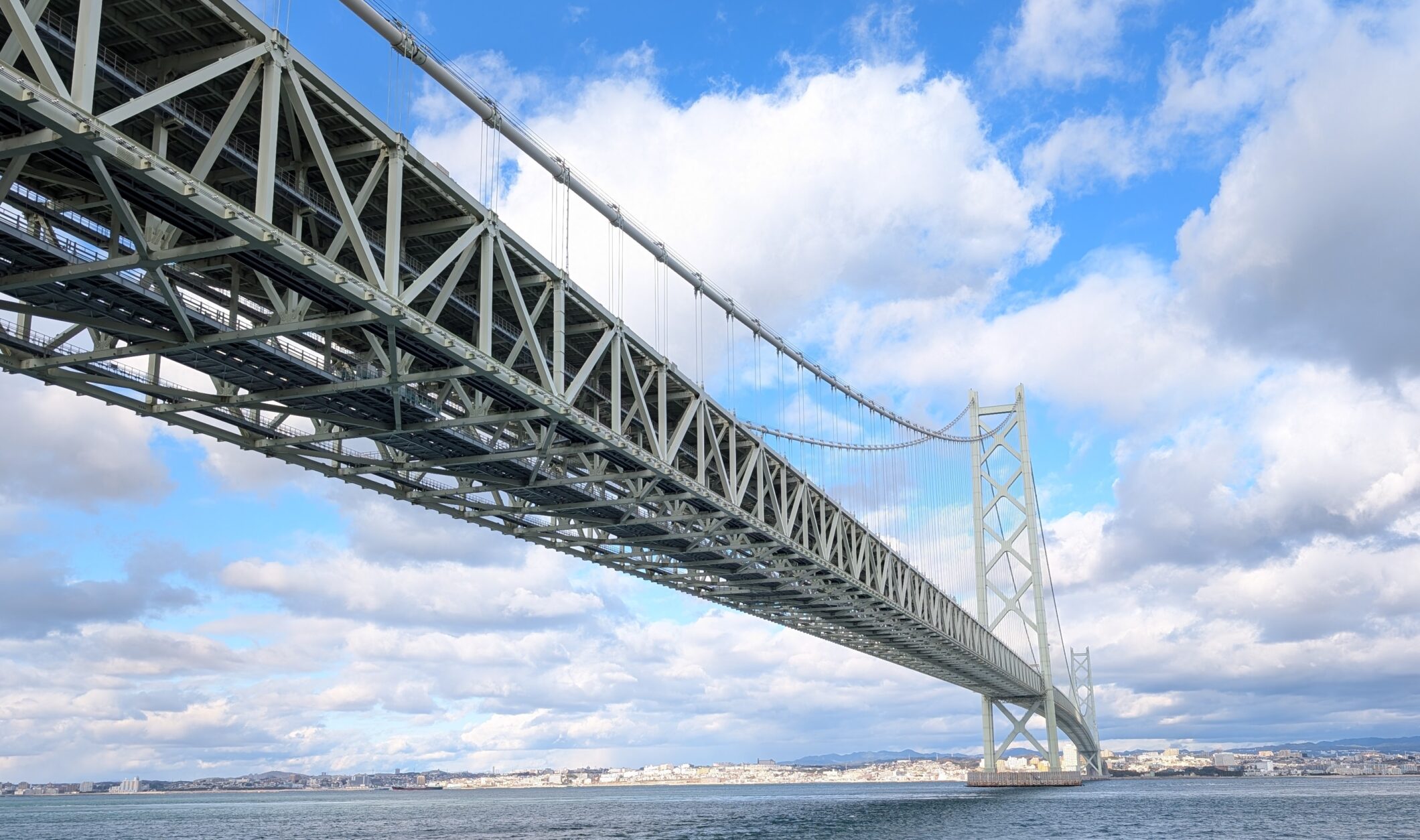 日本最長の吊り橋、明石海峡大橋を渡り初上陸しました。