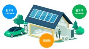 高い断熱性能+効率的な省エネ設備+太陽光発電によって住宅のエネルギー収支をゼロにすることを目指した住宅のことです。