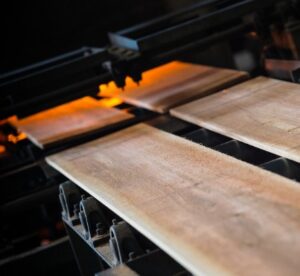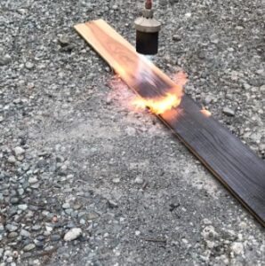 バーナー焼き:バーナーで炙るように杉板を焼く方法