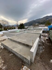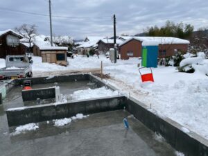 ↓ 基礎完了後 雪が積もった状態