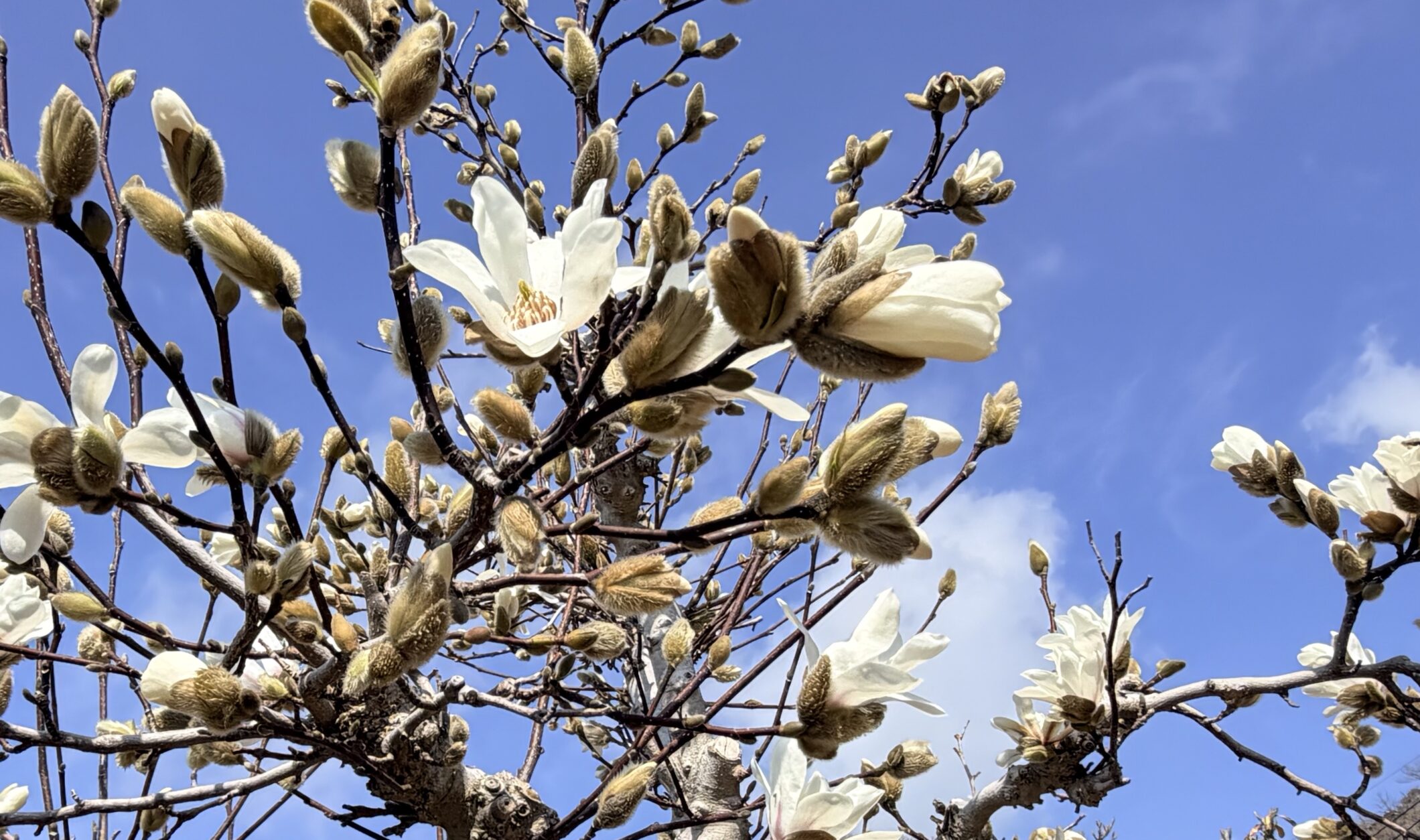 敷地内にモクレンが大きな白い花を咲かせているのを見つけました^^
