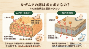 「無垢材がなぜ太陽の熱を心地よく保持できるのでしょうか?」