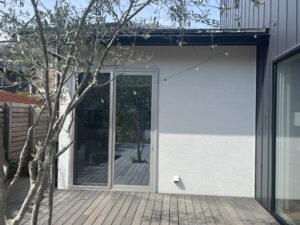 庭から打合せルームを見たところです。
