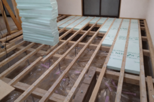 既に土間が見えている状態ですが、元々の断熱材の厚みが3㎝しかなく
