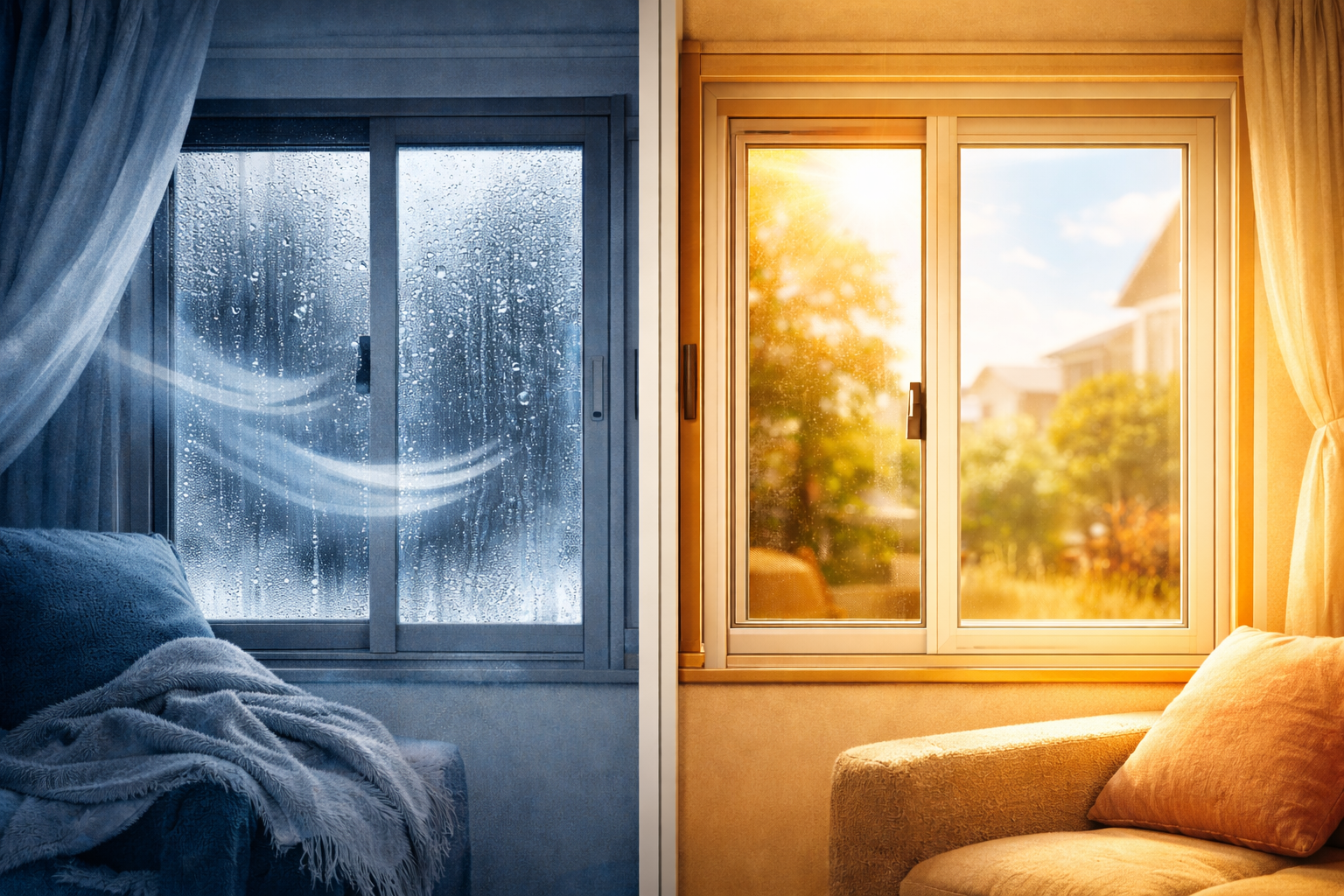 ・冬は冷たい冷気、夏は暑い日差しが・・・