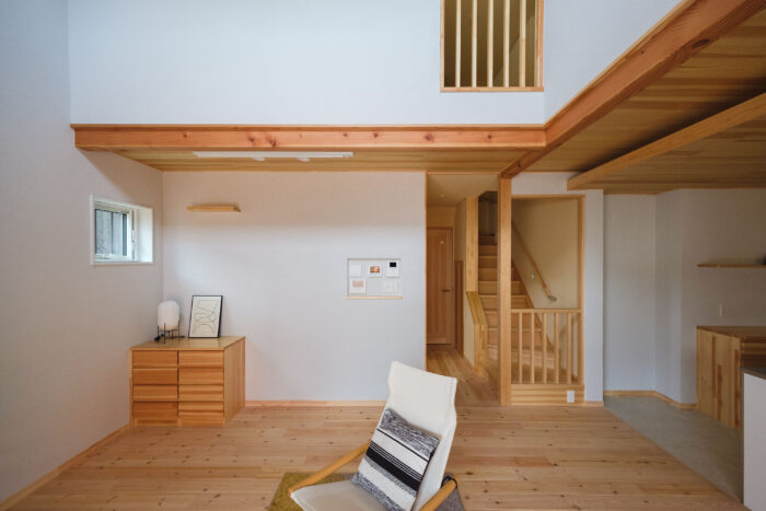 手仕事の温もりと開放感。造作家具×吹き抜けリビングのムクのイエ